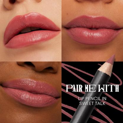 Our signature Satin Lipstick has been maxed out to give lips MORE with a Sleek Satin finish and good-for-lips formula that looks richer, feels creamier, glides smoother and hydrates lips for eight whole hours. Get MORE COLOUR with full-coverage, pigment-rich payoff in an Artist-approved range of 34 personality-packed shades. Get MORE COMFORT with a balmy blend of good-for-lips ingredients, including pomegranate flower extract to hydrate lips and camellia seed and rosehip oils to condition.